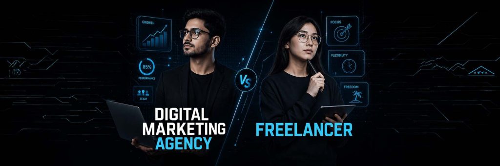 Choosing how to grow your business online is a big decision. You know you need help with AI SEO, ads, or social media, but you are stuck at a crossroads. Should you hire a specialized freelancer or partner with a full service digital marketing agency?