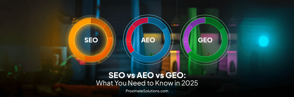 At Proximate Solutions, we integrate SEO vs AEO vs GEO, all three strategies: